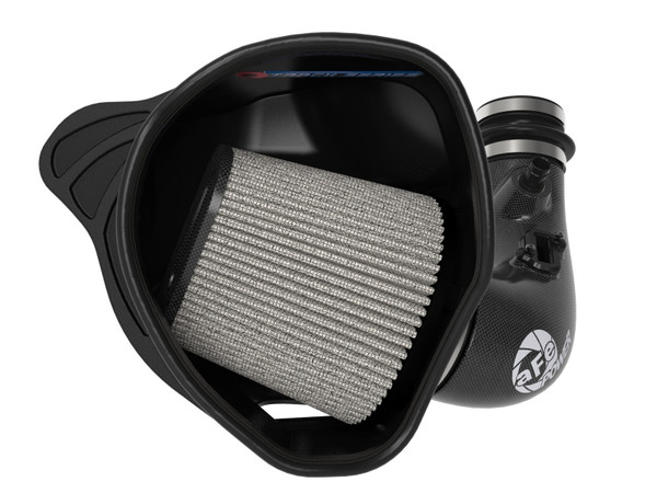 This 7†tall 360-degree radial flow air filter features a 4†flange and our oil-free Pro DRY S media with three layers of synthetic media for maximum convenience. Its progressive layering provides great filtration efficiency and dust holding capacity, while not requiring the use of oils. This media is best suited for street and light off-road use. This Track Series air filter uniquely features a 100% twill weave carbon fiber top. The included massive air filter is surrounded by an open-element XLPE (cross-linked polyethylene) polymer housing that minimizes warm engine air for maximum performance. Its open design allows for easy viewing of the air filter and delivers an aggressive air intake sound. The lightweight tube is computer-designed to achieve maximum power gains while maintaining a perfect fit. Manufactured from 100% twill weave carbon fiber, it features zero fiberglass and is clear-coated for the highest quality construction. This intake is designed to use factory mounting locations, minimizing the use of unnecessary hardware, ensuring a perfect fit every time. Its revolutionary design, featuring our patent pending filter-to-housing interface uses half the number of parts of a traditional cold air intake system. Stainless-steel clamps are included for strength, and a premium bellows coupling allows for ample flexibility.
