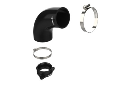 This turbo inlet is the perfect addition to the Takeda intake. It removes the air flow restriction of the factory turbo inlet and guarantees the maximum air flow to the turbo for maximum power. It provides a smooth transition for the air from the Takeda air intake tube to the turbo with the minimum restriction. Precisely CNC machined out of 6061-T6 billet aluminum, the adapter mounts directly onto the turbo and guides the increased air flow from the Takeda intake into the turbo. It is black anodized for durability and a stealthy appearance. This turbo inlet utilizes a flexible silicone coupling that is reinforced with three layers of polyester material, making it resistant to wear and deterioration. The silicone coupling mates directly to the aluminum turbo adapter and the Takeda air intake tube. All necessary clamps are provided. All necessary clamps and hardware are provided for a fast and easy installation. The factory harness bracket mounts directly onto the aluminum adapter for perfect fitment. This item will only fit with Takeda air intake systems P/N: 56-10021D , 56-10021R, 56-70021D and 56-70021R . It will NOT fit with the factory air intake system. For use with factory air intake system, see part number 59-20001.