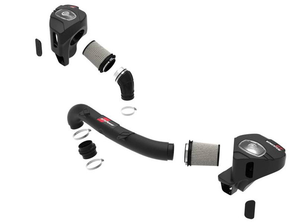 Large Three Layer Performance Air Filters:The 6-1/2†tall 360-degree radial flow air filters feature a 3-1/2†round flange and our oil-free Pro DRY S media with three layers of synthetic media for maximum convenience. Its progressive layering provides great filtration efficiency and dust holding capacity, while not requiring the use of oils. This media is best suited for street and light off-road use.Unique One-Piece Housings:The smooth one-piece sealed housings, constructed of heat-resistant XLPE (cross-linked polyethylene) polymer, features our patent-pending filter-to-housing interface. Large, clear sight windows allow for hassle-free filter inspection, without having to disassemble your system.Dyno-Tuned Intake Tubes:This system features high quality, computer-designed, dyno-tuned intake tubes to achieve maximum power gains while maintaining a perfect fit. Made from XLPE material and high-performance silicone, the intake tubes provide heat-soak resistance and extreme durability.Hassle-Free Installation:This intake is designed to use factory mounting locations, minimizing the use of unnecessary hardware, ensuring a perfect fit every time. Its revolutionary design, featuring our patent pending filter-to-housing interface uses half the number of parts of a traditional cold air intake system.Premium Components:Stainless-steel worm clamps are included for strength, and a premium bellows coupling allows for ample flexibility.