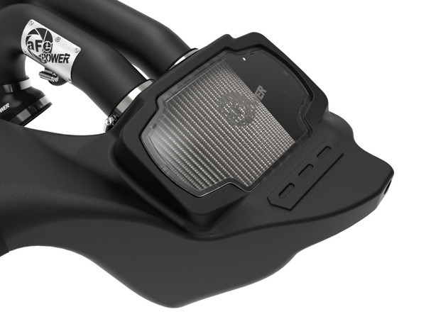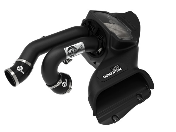 Momentum’s unique filter-to-housing interface was built to feature the largest air filter possible. This 9†tall 360-degree radial flow air filter features two 3†inlets and our oil-free Pro DRY S media with three layers of synthetic media for maximum convenience. Its progressive layering provides great filtration efficiency and dust holding capacity, while not requiring the use of oils. This media is best suited for street use. Its inverted top makes for more filter surface area, resulting in longer service intervals. This media is best suited for street and light off-road use. The smooth one-piece sealed housing, constructed of heat-resistant cross-linked polyethylene (XLPE), features our patent-pending filter-to-housing interface. Its innovative design minimizes the total number of parts, making for an easy installation. A large, clear sight window allows for hassle-free filter inspection, without having to disassemble your system. The housing incorporates the factory air inlet scoop. Dual mandrel-bent wrinkle-black powder-coated aluminum intake tubes direct unrestricted airflow from the filter to the turbos for more horsepower and torque. A hose connects both tubes to balance air intake pressure. A silicone seal piece finishes the inlet of the housing and seals to the hood to block off unwanted hot engine air from entering the air intake system. Premium stainless-steel worm-gear clamps provide the best corrosion resistance possible and premium silicone couplings allows for ample flexibility and guarantee perfect seals. Momentum XP intakes are designed with fewer parts for a quick and simple installation.