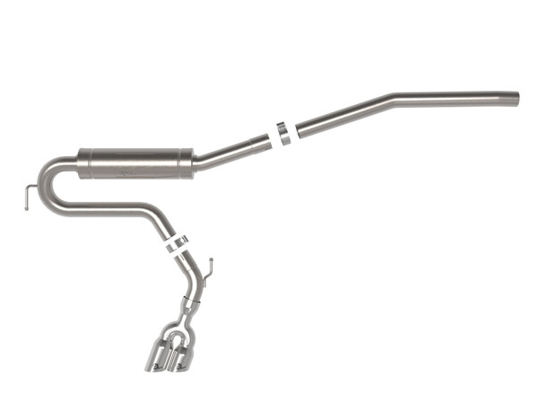 This cat-back exhaust system is constructed of 2-1/2 IN mandrel-bent 304 stainless steel tubing for maximum strength and durability. This system features a high-flow 304 stainless steel muffler, producing a deep sound. Finishing off this exhaust system is a 3-1/2 IN diameter polished 304 stainless steel exhaust tip. The tip features a laser etched aFe POWER logo for a unique style. This system produces a deep sound unleashing all available horsepower and torque. Some cutting may be required, see instruction sheet for further information. Utilizing factory style hangers this system mounts directly to factory mounting locations for a hassle-free installation. State-of-the-art computer-aided design technology is utilized for precise vehicle fitment. 100% MIG-Welded for race-proven strength and durability.