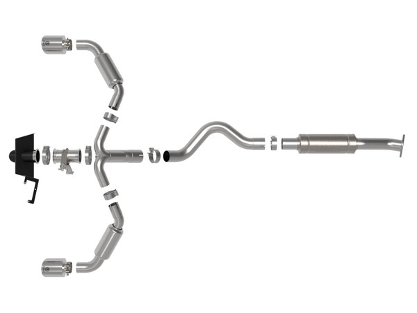This cat-back exhaust system is constructed of 3 IN - 2-1/2 IN mandrel-bent brushed finished 304 stainless steel tubing for maximum strength and durability. This system features a high-flow 304 stainless steel muffler, producing a deep sound. Finishing off this exhaust system are dual 4-1/2 IN diameter polished 304 stainless steel clamp-on exhaust tips. The tips features a laser etched Takeda logo for a unique style. This system produces a deep sound unleashing all available horsepower and torque. This kit includes key fob remotes, control module, valve motor, and all necessary wiring. It's a simple installation, requiring no cutting of any wires or interference of the automobile's electronics. This system features an electronically controlled exhaust cutout valve to quickly switch between exhaust tones at the push of a button. A mitered merge collector is used to decrease turbulence and increase exhaust velocity resulting in increased horsepower, torque and improved throttle response. State-of-the-art computer-aided design technology is utilized for precise vehicle fitment. 100% TIG-Welded for race-proven strength and durability.