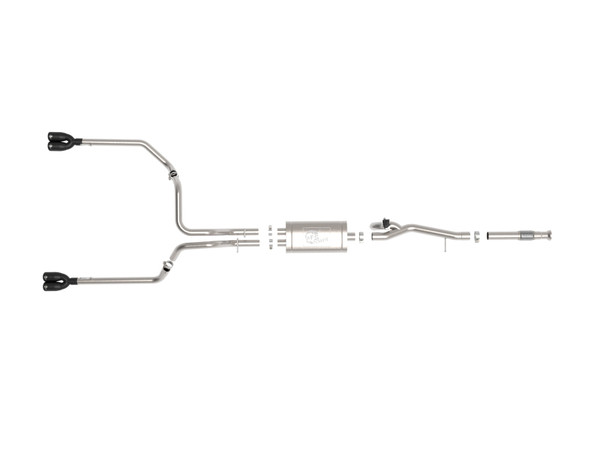 This system produced gains of up to +5 HP and +6 lbs. x Ft. TQ., as measured on our in-house dyno. This cat-back exhaust system is constructed of 3 IN - 2-1/2 IN mandrel-bent 304 stainless steel tubing for maximum strength and durability. This system features a high-flow stainless steel, producing an aggressive sound. Muffler finish may vary. Finishing off this exhaust system are dual 3-1/2 IN diameter black 304 stainless steel exhaust tips. The tips features a laser etched aFe POWER logo for a unique style. This system produces an aggressive sound unleashing all available horsepower and torque. Utilizing factory style hangers this system is a direct bolt-on system, which requires no cutting or modifications for a hassle-free installation. This cat-back exhaust system uses a heavy duty flex pipe with an internal interlock liner for added strength and durability. This kit includes key fob remotes, control module, valve motor, and all necessary wiring. It's a simple installation, requiring no cutting of any wires or interference of the automobile's electronics. This system features an electronically controlled exhaust cut-out valve to quickly switch between exhaust tones at the push of a button. Utilizing state-of-the-art computer-aided design technology, this exhaust system is designed for custom, high tolerance factory fitment. 100% MIG-Welded for race-proven strength and durability.