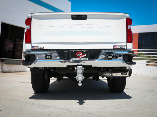 This DPF-back exhaust system is constructed of 5" mandrel-bent 409 stainless steel tubing for maximum strength and durability. Finishing off this exhaust system is a 6" diameter polished 304 stainless steel intercooled clamp-on exhaust tip. The tip features an aFe POWER logo plate riveted on for a unique style. Some cutting may be required, see instruction sheet for further information. Utilizing factory style hangers this system mounts directly to factory mounting locations for a hassle-free installation. Utilizing state-of-the-art computer-aided design technology, this exhaust system is designed for custom, high tolerance factory fitment. 100% MIG-Welded for race-proven strength and durability. This system fits: Double Cab / Short-Bed - 149.4" Wheelbase, Crew Cab / Short-Bed - 158.9" Wheelbase, Double Cab / Long-Bed - 162.4" Wheelbase, Crew Cab / Long-Bed - 172" Wheelbase