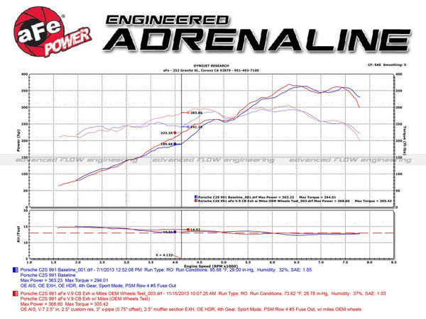 aFe is proud to introduce the aFe dual cat-back exhaust system. In recent testing this aFe cat-back exhaust system produced 34 horsepower and 43 lbs. x ft. of torque, furthermore, weighs 20 lbs. less than the stock exhaust. With the iconic 911 already a well-engineered performance driving machine, aFe developed the perfect balance of pure, race-inspired performance while ensuring that perfect sound decibel and exhaust note creates the ultimate driving experience. Starting with a CAD X-Pipe, aFe spent countless hours of R&D to ensure that the volume, flow and balance was no less than perfect. Also, aFes unique brushed finish step mid pipe design unleashes all available power and creates a broad and exciting power band. Included are dual 304 stainless steel light-weight race mufflers and resonators, this straight through design eliminates any restriction and optimizes maximum power and performance with no compromise. Available with 3.5 in. polished 304 stainless steel quad tips and CNC-Machined laser-etched tip inserts, this system is hand-crafted and TIG-welded for a perfect, precise fit and 100% complete bolt-on installation. No modifications necessary.