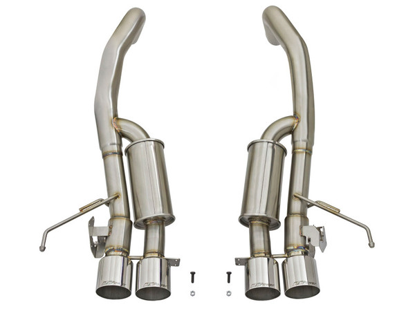 Aggressive Sound: Dual free-flowing mufflers are used to absorb high pitch tones producing a powerful sound and unleashing all available horsepower and torque. Exhaust Valve: This axle-back exhaust system incorporates factory style NPP dual mode exhaust valves which use the factory exhaust valve motors (not included). The valves helps regulate, direct and control the flow of exhaust gases by opening, closing, or partially obstructing passageways depending on throttle position for maximum performance. Simple Installation: is MACH Force-Xp axle-back exhaust system uses factory mounting locations providing stability and a hassle-free installation. Quad 4" Polished Tips: Finishing off this system are quad 4" diameter, polished, 304 stainless steel tips. The tips come with a laser-etched aFe power logo for an aggressive style. Leak-Free Seal: High quality band clamps are used for a complete 360 degree sealing surface. Brushed 304 SS Construction: The performance axle-back exhaust system is constructed of 3" to 2-1/2" mandrel-bent, brushed 304 stainless steel tubing for maximum performance, corrosion resistance and strength eliminating cracking. Note: Failures of original equipment AFM and NPP actuators are not covered by aFe Power(R) warranty. All aFe exhaust systems are engineered and manufactured in our Corona, California manufacturing facility.