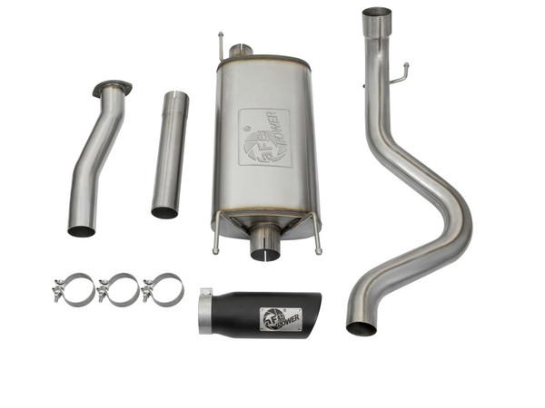 aFe power introduces the MACH Force-Xp cat-back exhaust system for the Toyota Tacoma with V6-3.5L engine. This cat-back exhaust is constructed out of 3 100% MIG-welded, mandrel-bent, stainless steel tubing for maximum flow. The smooth transition bends and free-flow stainless steel muffler allow for low turbulence, increasing horsepower, torque and improved throttle response. In testing, the cat-back exhaust system resulted in gains up to +9 horsepower and +10 lbs. x ft. of torque, as measured on our in-house dyno. Finishing off this exhaust is a 4.5 diameter black tip. The tip comes with a laser-cut aFe Power badge riveted on for an aggressive style.