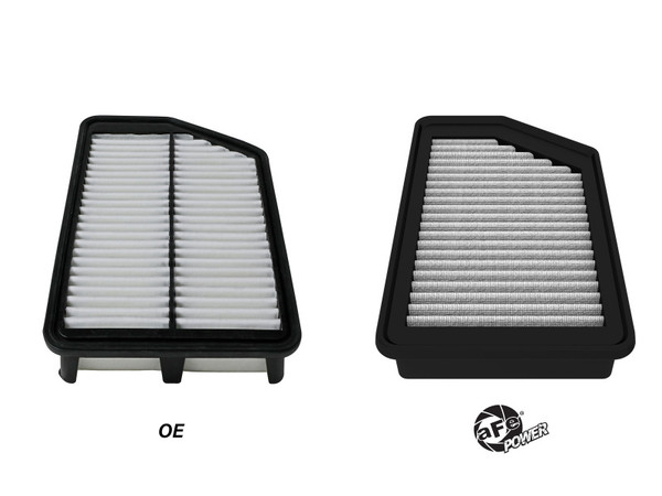 This filter features three layers of oil-free synthetic media and requires no oil during maintenance to provide maximum convenience. Its progressive layering provides great filtration efficiency and dust holding capacity. This media is best suited for street use. Pro DRY S filters are easily recharged with aFe's POWER CLEANER. aFe POWER performance air filters use a rounded, evenly spaced pleat design which allows for more usable filter surface area, providing increased flow and greater dust holding capacity. This pliable sealing surface conforms to even the most uneven filter housing, making for a perfect filter fit and sealing surface every time. This design eliminates the use of gaskets or sealants and always goes back to its original form. All aFe POWER flat panel performance air filters are constructed with a full 360-degree polyurethane frame. Unlike other materials that degrade after repeated heat cycles in an engine bay, polyurethane maintains its original molded shape.