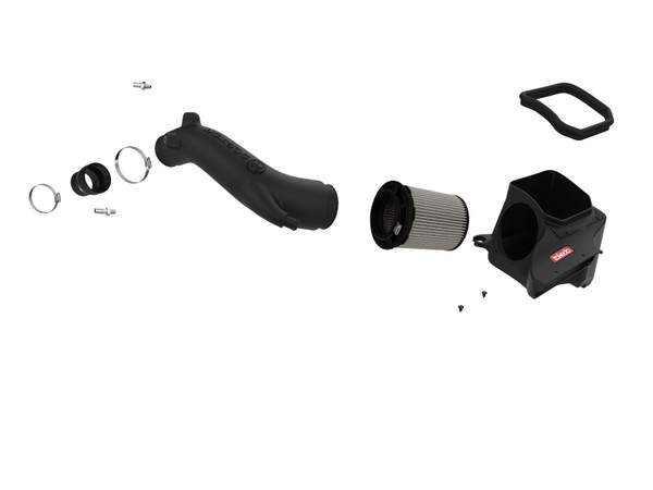 This 360-degree radial flow air filter features a 4" flange and our oil-free Pro DRY S media with three layers of synthetic media for maximum convenience. Its progressive layering provides great filtration efficiency and dust holding capacity, while not requiring the use of oils. This media is best suited for street use. Its inverted top makes for more filter surface area, resulting in longer service intervals. This system features a high quality, computer-designed, dyno-tuned intake tube to achieve maximum power gains while maintaining a perfect fit. Its XLPE material is heat soak resistant and extremely durable. It features a Takeda design inspired by import vehicles. The included performance air filter is surrounded by an open-element XLPE (cross-linked polyethylene) polymer housing that minimizes warm engine air for maximum performance. Its open design allows for easy viewing of the air filter and delivers an aggressive Air Intake sound. It features an incorporated scoop to capture air from the front of the vehicle. Stainless-steel clamps and reinforced silicone couplings are included for strength and durability. Momentum intakes are designed with fewer parts for a fast and easy installation. Included billet aluminum fittings allows stock connections to transfer over seamlessly. To maximize the amount of air going to the this Air Intake System, Takeda Turbo Inlet 59-20002 is available. This Turbo Inlet will remove the air flow restriction of the factory turbo inlet, providing a smooth transition for the air from the Takeda Air Intake tube to the turbo.