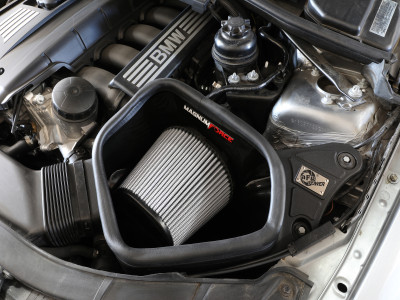 These 6" tall 360-degree radial flow air filters feature our oil-free Pro DRY S media with three layers of synthetic media for maximum convenience. Their progressive layering provides great filtration efficiency and dust holding capacity, while not requiring the use of oils. This media is best suited for street use. Their inverted top makes for more filter surface area, resulting in longer service intervals. The included high-performance air filters are surrounded by open-element XLPE (cross-linked polyethylene) polymer housings that minimize warm engine air for maximum performance. Their open design allows for easy viewing of the air filters and delivers an aggressive Air Intake sound. They utilize the vehicle's factory air inlet with no additional hardware. This system features high quality, computer-designed, dyno-tuned intake tubes to achieve maximum power gains while maintaining a perfect fit. Their black XLPE material is heat soak resistant and extremely durable. The longer tube passing in front of the engine features aluminum trim, securing the coolant hose and giving a unique look to your engine bay. An optional carbon fiber trim piece can be purchased separately (PN 54-13032CC). This is a direct fit intake system that utilizes factory mounting points and requires no cutting or modifications. All necessary clamps, couplings, and hardware are included. Its revolutionary design, featuring our patent pending filter-to-housing interface, uses half the number of parts of a traditional cold air intake system.