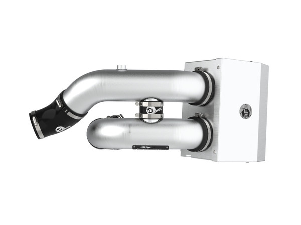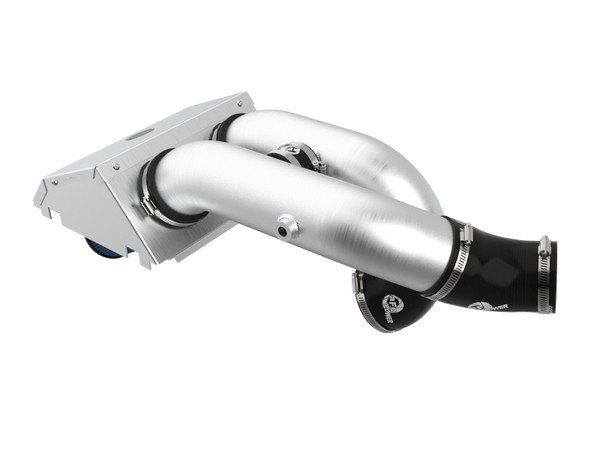 The aFe POWER Pro 5R air filters are pre-oiled and are 8†tall with 360-degree radial flow performance and five layers of progressively fine cotton gauze media for maximum airflow and protection. They provide your engine with the largest amount of high-flowing air, usually resulting in the highest power gains out of all our filter media options. This media is perfect for street and/or track use. Dual one-piece 3-1/2" mandrel-bent brushed aluminum intake tubes direct unrestricted airflow from the massive filters to the turbos for more horsepower and torque. aFe developed this lightweight brushed aluminum heat shield to snap onto the top of the lower half of the factory airbox to provide a hassle-free installation utilizing factory mounting locations. A brushed aluminum cover is used to finish off this intake and add a sense of style to your engine bay. Premium hardware and clamps are used to securely mount the high flow air filters and the intake tubes.