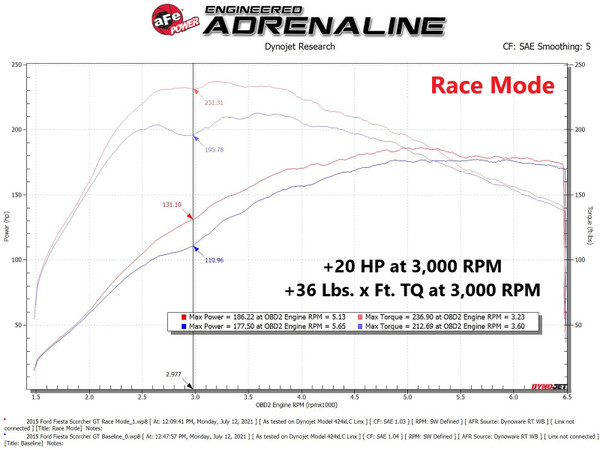A simple 30 minute install will give you a huge increase in power. The aFe POWER SCORCHER GT Module includes a high quality case & wire harness with factory style connectors for an easy plug & play installation. A LED light switch provides In-Cabin On-The-Fly power adjustments. The 4-Power settings are adjustable with one button and the LED light represent the settings: Stock (Green), Sport (Yellow), Sport+ (Orange) and Race (Red) . This performance module increase turbo boost. It improves vehicle performance and throttle response. In testing, this module resulted in a gain of +20 HP and +36 Lbs. x Ft. of torque, verified by our in house dyno. This quick and easy plug & play SCORCHER GT module adds significant power by altering pressure sensor signals to increase turbo boost to improve vehicle efficiency, power and throttle response. SCORCHER GT modules features In-Cabin On-the-Fly power adjustment to accommodate any situation. This adjustment is controlled by via LED light switch with a button that can be easily mounted in any location in the cabin. aFe SCORCHER GT modules uses high quality aluminum extrusion black powder-coated enclosure casing and factory style connectors which requires no modification to your factory harness. These factory style connectors, plugs directly into the stock wiring harness connectors and sensors. SCORCHER GT modules are 100% tested for proper protection. These modules work amazingly on stock vehicles and are optimized for maximum performance with use of aFe POWER performance products. aFe POWER does not recommend using this device in conjunction with any other tuners or modules. Sport or Sport + settings are recommended when towing.