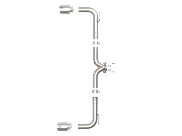 This system produced gains of up to +6.45 HP and +8.12 lbs. x Ft. TQ., as measured on our in-house dyno. This axle-back exhaust system is constructed of 2-1/2" mandrel-bent 304 stainless steel tubing for maximum strength and durability. Finishing off this exhaust system are dual 4-1/2" diameter polished 304 stainless steel clamp-on exhaust tips. The tips features a laser etched Takeda logo for a unique style. This system produces a deep sound unleashing all available horsepower and torque. Utilizing a factory style flange and hangers this system is a direct bolt-on system, which requires no cutting or modifications for a hassle-free installation. A mitered merge collector is used to decrease turbulence and increase exhaust velocity resulting in increased horsepower, torque and improved throttle response. Utilizing state-of-the-art computer-aided design technology, this exhaust system is designed for custom, high tolerance factory fitment. 100% MIG-Welded for race-proven strength and durability.