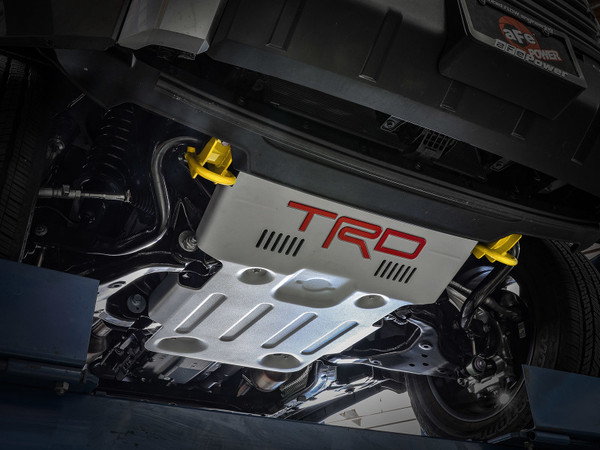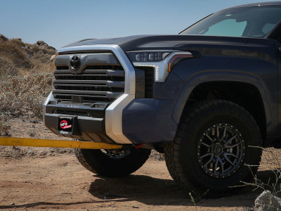 Add dedicated front recovery points to your Toyota Tundra. aFe POWER Tow Loops mount directly to the frame and are much safer than the factory tie-down loop when towing or recovering a stuck vehicle. The 3/4 IN solid steel loop is designed to safely withstand and distribute heavy loads allowing access to several recovery attachments for a strong and durable recovery point. Powder-coated yellow so they are easily recognized in the elements during off-road adventures. aFe POWER front tow hooks are constructed from 3/16 IN laser-cut, CNC machined steel brackets, and 3/4 IN solid steel bar. MIG welded for strength and durability. Bolts Directly onto the frame, using the front sway bar mounts with no drilling or modifications. Retains the front sway bar use while clearing the Active Aero front spoiler and factory bumper. (Patent Pending)
