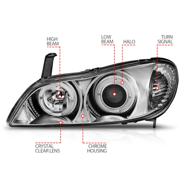 Projector Headlight Set, w/Halo, Clear Lens, Black Housing, Pair, For Use w/Non HID Models Only, . Guaranteed To Improve Your Vehicles Appearance. Rigorously Tested For Fit And Function. Simple Plug...