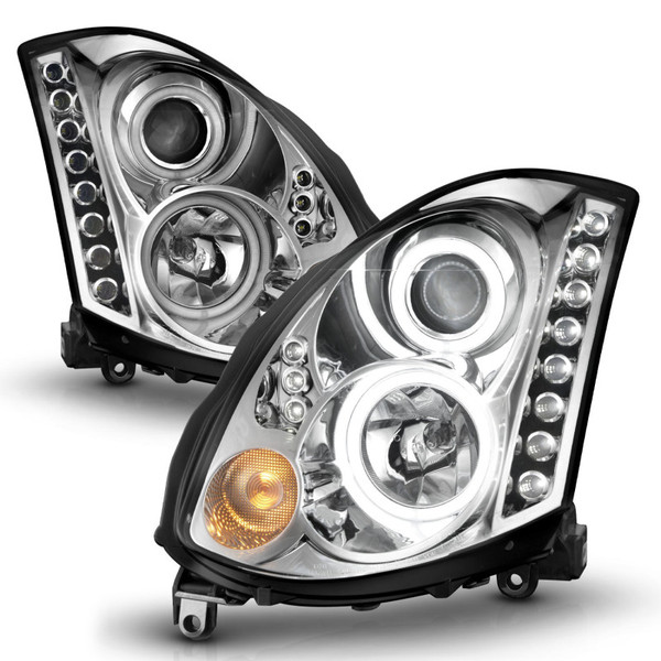ANZO 2003-2007 Infiniti G35 Projector Headlights w/ Halo Black (CCFL) (HID Compatible) - 121363