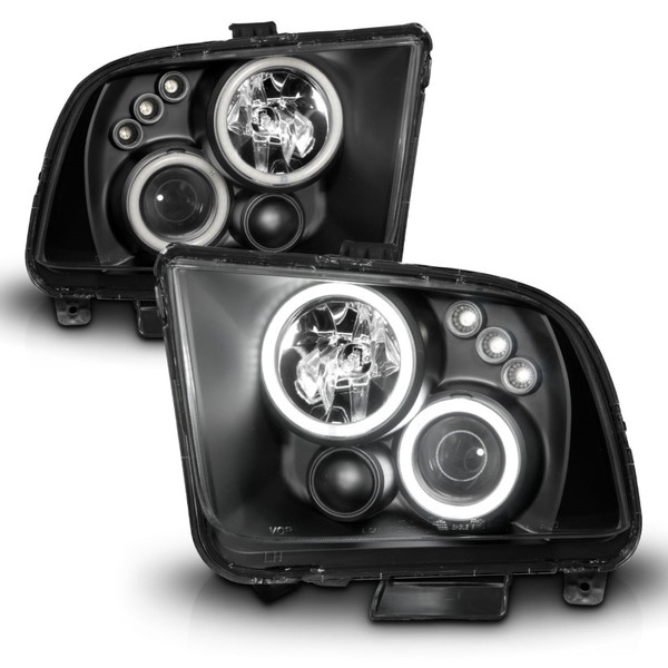 ANZO 2005-2009 Ford Mustang Crystal Headlights w/ Halo Black (CCFL) - 121033