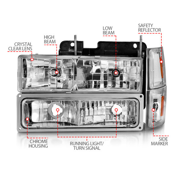 ANZO 88-98 Chevrolet C1500 Crystal Headlights Chrome Housing w/ Signal and Side Marker Lights - 111508