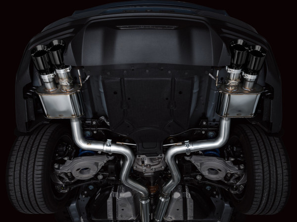 Introducing the AWE SwitchPathâ„¢ Cat Back Exhaust for the Ford S650 Mustang GT. This system maintains all the customization options of the factory active exhaust while liberating the Dark Horse’s 5.0L engine with just a button press or a throttle punch. Engineered to blend sophistication with raw power, SwitchPathâ„¢ ensures your comfort with its valved design. Featuring a complete 3†build with modular inlets, it includes slip fit adapters for seamless integration with factory headers, and offers a dual 3†connection option for those seeking a more aggressive setup. With tier-1 valving, drive modes, customized settings, and programmable buttons, it swiftly responds to your commands. The precision H-pipe delivers a deep, rich muscle tone with minimal rasp, distinguishing it from X-pipe alternatives. Additionally, straight-through bullet-style resonators in the mid pipes further diminish rasp, particularly beneficial for drivers contemplating header upgrades. On the performance front, it offers dyno-verified gains of +8 hp and +8 lb-ft of torque at the wheels. AWE's SwitchPathâ„¢ Cat Back is fully emission-friendly, integrating seamlessly with factory emissions equipment. The package is completed with quad 4†slash-cut, double-walled tips, available in chrome silver or diamond black. Crafted in PA, USA, from US-sourced .065â€-wall T304L stainless steel, every aspect is meticulously engineered, designed, and manufactured in-house at AWE. Backed by AWE's Lifetime Warranty, No CEL Light Guarantee, and Perfect Fitment Guarantee.