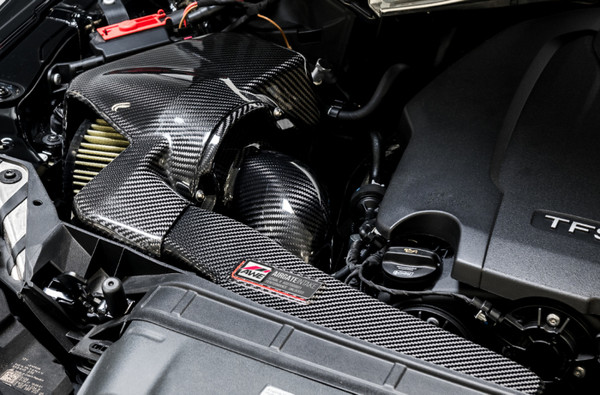 Break the mold with AirGate™. The AirGate™ Carbon Intake for the B9 A4/A5 The AirGate™ Carbon Intake allows options for those seeking more volume from their intake when under boost. Want to hear more turbo inductions sounds from within the cabin? Go lidless. Prefer to keep it a bit more stealthy? Simply bolt the AirGate™ lid in place with a few turns of two easily-accessible hex screws. Constructed of genuine 2x2 carbon fiber with a UV-stabilized resin and clear coat, the AirGate™ Carbon Intake mounts securely to the stock location and integrates with the factory ducting perfectly via the AirGate’s floating airbox inlet. The S-FLO Filter The included AWE S-FLO Filter is designed specifically for this air box to be easily serviceable and to maximize airflow. This increase in airflow unlocked maximum gains of 12 hp and 9 lb-ft of torque at the wheels. The combination of carbon fiber airbox and included S-FLO Filter makes for a more aggressive intake note, with an intoxicating turbo spool sound. Please Note: AWE AirGate Intakes are for Racing Use Only.
