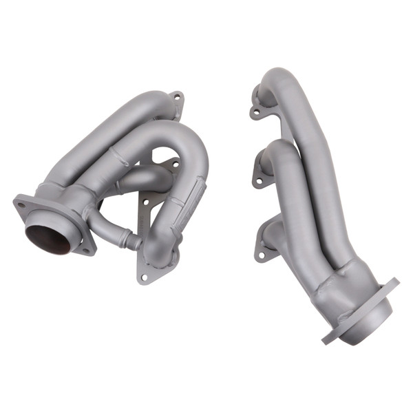 These BBK Performance shorty tuned Length exhaust Headers are designed and constructed as direct fit replacements for all 05-10 Mustang V6 applications. Each header is manufactured with 1-5/8 in. CNC mandrel bent tubing that offers unrestricted exhaust flow for increased horsepower and torque over factory OEM manifolds. BBK tuned Length headers offer improved scavenging waves for better combustion, which leads to improved performance and fuel economy over stock or equal Length headers. As with all BBK Performance exhaust headers they feature a 3/8 in. laser cut flange for additional strength and a guaranteed leak free fit. All headers are robotically and precision hand welded and then pressure tested to ensure years of reliability and performance in the real world. All BBK exhaust headers are available in a titanium ceramic or polished silver ceramic coated finish and include new exhaust header gaskets, header bolts and hardware to complete the installation.