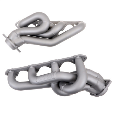 These BBK Performance shorty tuned Length exhaust Headers are designed and constructed as direct fit replacements for all 2011-2014 Ford 5.0L COYOTE F150 truck applications. Each header is manufactured with 1-3/4 in. CNC mandrel bent tubing that offers unrestricted exhaust flow for increased horsepower and torque over factory OEM manifolds. BBK tuned Length headers offer improved scavenging waves for better combustion, which leads to improved performance and fuel economy over stock or equal Length headers. As with all BBK Performance exhaust headers they feature a 3/8 in. laser cut exhaust header flange for additional strength and a guaranteed leak free fit. All headers are robotically and precision hand welded and then pressure tested to ensure years of reliability and performance in the real world. All BBK exhaust headers are available in a Titanium Ceramic or Polished Silver Ceramic coated finish. All Kits include new exhaust header gaskets, header bolts and hardware to complete the installation.