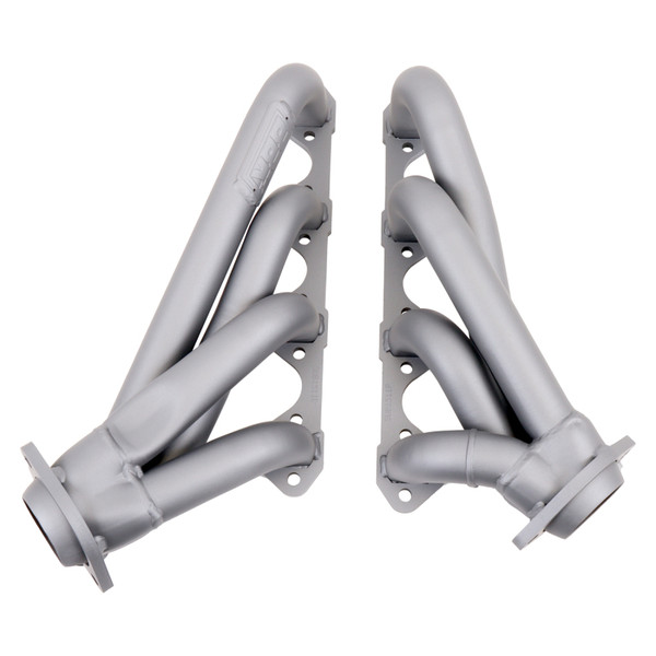 These BBK Performance shorty unequal Length exhaust Headers are designed and constructed with 1-5/8 in. CNC mandrel bent tubing that offers unrestricted exhaust flow for increased horsepower and torque over factory OEM manifolds. As with all BBK Performance exhaust headers they feature a 3/8 in. laser cut flange for additional strength and a guaranteed leak free fit. All headers are robotically and precision hand welded and then pressure tested to ensure years of reliability and performance in the real world. All BBK exhaust headers are available in a titanium ceramic or polished silver ceramic coated finish and include new exhaust header gaskets, header bolts and hardware to complete the installation.
