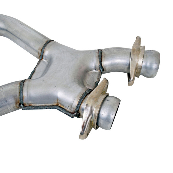 BBK Performance short mid X pipes with catalytic converters are specifically designed to be used with 1979-1993 BBK full Length exhaust headers 1-5/8 and 1-3/4 to complete the exhaust installation to your cars cat back exhaust system. This BBK mid pipe is designed and built with 2-1/2 in. CNC mandrel bent tubing for maximum exhaust flow and high flow catalytic converters. All BBK mid pipes feature ball and socket style connectors for simple installation and adjustment for good ground clearance. The BBK X center section crossover is designed to maximize the exhaust flow potential of your Mustangs high performance engine to get the maximum horsepower and torque available to the ground. Every BBK mid X pipe offers performance, quality and value that guarantees years of top performance for your Mustang.