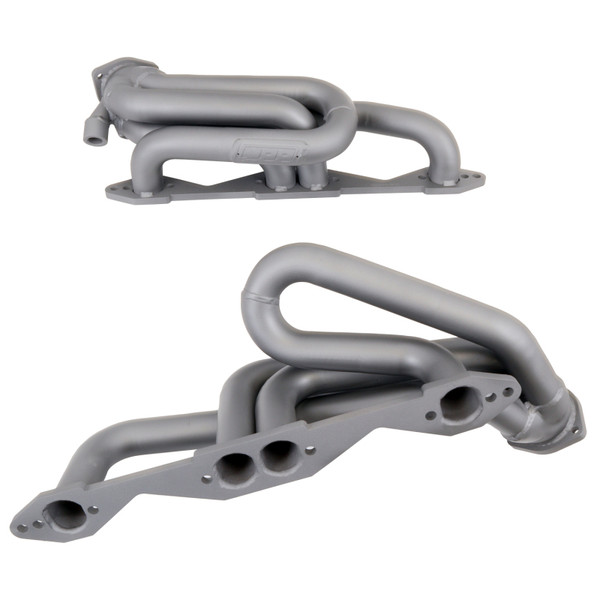 These BBK Performance shorty tuned Length exhaust Headers are designed and constructed as direct fit replacements for all 96-99 GM Truck, SUV 5.0L and 5.7L applications. Each header is manufactured with 1-5/8 in. CNC mandrel bent tubing that offers unrestricted exhaust flow for increased horsepower and torque over factory OEM manifolds. BBK tuned Length headers offer improved scavenging waves for better combustion, which leads to improved performance and fuel economy over stock or equal Length headers. As with all BBK Performance exhaust headers they feature a 3/8 in. laser cut flange for additional strength and a guaranteed leak free fit. All headers are robotically and precision hand welded and then pressure tested to ensure years of reliability and performance in the real world. All BBK exhaust headers are available in a titanium ceramic or polished silver ceramic coated finish and include new exhaust header gaskets, header bolts and hardware to complete the installation.