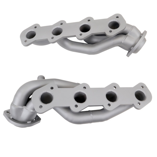 These BBK Performance shorty tuned Length exhaust Headers are designed and constructed as direct fit replacements for all 99-04 Ford 5.4L F150 truck applications. Each header is manufactured with 1-5/8 in. CNC mandrel bent tubing that offers unrestricted exhaust flow for increased horsepower and torque over factory OEM manifolds. BBK tuned Length headers offer improved scavenging waves for better combustion, which leads to improved performance and fuel economy over stock or equal Length headers. As with all BBK Performance exhaust headers they feature a 3/8 in. laser cut flange for additional strength and a guaranteed leak free fit. All headers are robotically and precision hand welded and then pressure tested to ensure years of reliability and performance in the real world. All BBK exhaust headers are available in a bright chrome or polished silver ceramic coated finish and include new exhaust header gaskets, header bolts and hardware to complete the installation. 50 State Legal - CARB APPROVED