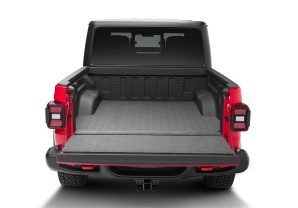The BedRug Impact Mat is designed specifically for trucks that have an existing spray-in liner or no bed liner. The all new design has an integrated tailgate gap guard hinge that connects the bed piece to the tailgate piece. The TPO composite top layer construction offers a flat work surface, that is slip and skid resistant. The " padded under layer provide dent and impact resistance while offering cushion for your knees while crawling around in your truck bed. The Impact Mat installs in minutes using hook and loop fasteners to install without the need to prep, sand or drill holes into your truck bed.
