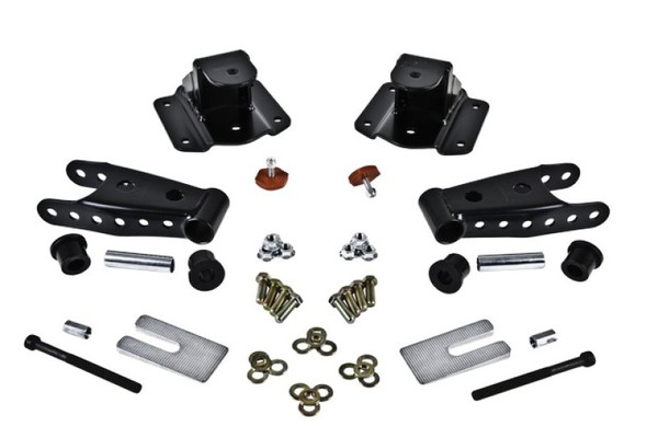 Belltech Shackle and Hanger Kits are designed to lower the rear of your leaf spring equipped Sport Truck or SUV by up to 5" (Note: Application dependent). Belltech's redesigned Shackle and Hangers reposition the front and/or rear leaf spring mounting points (spring eyes) so you can simply and effectively lower your leaf spring equipped Sport Truck or SUV without modifying or changing the factory leaf spring. This allows you to retain OEM ride quality and more importantly factory load capacity.