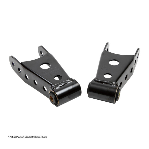 Belltech lowering Shackle kits, a simple, economical way to lower the rear of your truck 1, 2, or 3 inches to help give that leveled appearance. Belltech shackles are constructed from powdercoated, heavy gauge die stamped P&O steel featuring OEM quality vulcanized rubber bushings to insure a perfect fit and superior quality for a long, quiet maintenance free life.