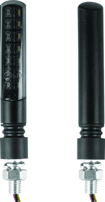 BikeMaster® Sequential Turn Signals are available in either a short or flexible stem version with 7 LEDs on the front models and 14 LEDs on the rear model. Matte Black, plastic body with smoke lens...