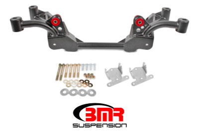 Reduce weight and increase frontend rigidity in your 3rd gen F-body with a K-member from BMR Suspension. BMR K-Members are designed to provide a lightweight alternative to the heavy and bulky factory K-members. Manufactured from 1-1/2-inch x 0.120 wall DOM steel tubing and 3/16-inch laser cut, CNC-formed steel plate, BMR Suspension gives you a lightweight, extremely strong K-member. Every BMR K-member is 100-percent bolt-in and requires no modifications for fitment. The KM007 K-member is designed to be used with the factory steering links.Designed for street performance, drag race, and road race applications, BMR K-members drop weight and add loads of structural rigidity. BMRs unique K-member design features integrated engine mount that replace the heavy factory engine mounts. This additional weight reduction allows BMR to use larger diameter tubing and thicker mounting plates for additional strength over other available K-members. When combined with BMRs upper and lower A-arms, a weight reduction of 42 pounds is common. With other lightweight frontend parts, weight reduction of up to 100 pounds is easily achievable. This K-member works with your stock engine or you can easily swap to a traditional SBC or BBC engine with no fabrication.BMR Suspensions KM007 K-Member is available in black hammertone and red powdercoat for long-lasting good looks. Installation time is about 4-5 hours. Proudly made in the U.S.A.!NOTE: Not compatible with OE A-arms.