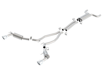 Fits vehicles WITHOUT Ground Effects Package (GFX). System features a merge X-Pipe for increased performance and improved sound. System has polished T-304 stainless steel tips. BORLA(r) Cat-Back(tm) & Axle-Back exhaust systems feature patented straight-through and multi-core technology designed to unleash hidden horsepower. Increased exhaust velocity adds power, driving excitement, fuel economy, and the distinctive BORLA(r) Sound of Power respected by motoring enthusiasts everywhere. Each system is built from premium T-304 stainless steel, superior to T-400 series knockoffs (such as 409), to give you the absolute best in performance and durability. Ultra-smooth mandrel bends ensure maximum flow & power, and precision computer-controlled CNC manufacturing ensures an accurate fit. Best of all, BORLA(r) stands behind every system with a Million-Mile Warranty. Just what you'd expect from the world's most experienced (and most winning) exhaust brand.