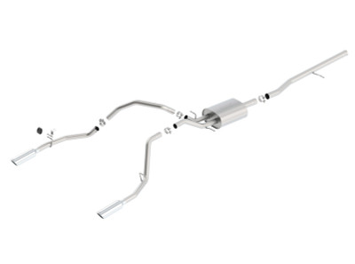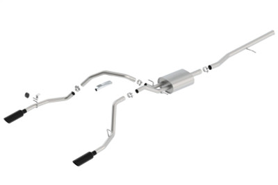 This system features a black chrome finish on T-304 stainless steel tips. Borla Stainless Steel Polish p# 21461 is NOT recommended with these black chrome tips. We suggest cleaning the tips with hot water and a microfiber cloth. Borla Cat-Back and Axle-Back exhaust systems feature patented straight-through and multi-core technology designed to unleash hidden horsepower. Increased exhaust velocity adds power, driving excitement, fuel economy, and the distinctive Borla Sound of Power respected by motoring enthusiasts everywhere. Each system is built from premium T-304 stainless steel, superior to T-400 series knockoffs (such as 409), to give you the absolute best in performance and durability. Ultra-smooth mandrel bends ensure maximum flow & power, and precision computer-controlled CNC manufacturing ensures an accurate fit. Best of all, Borla stands behind every system with a Million-Mile Warranty. Just what you'd expect from the world's most experienced (and most winning) exhaust brand.