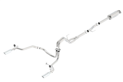 EXCEPT Raptor. Add Adapter 60556 for Crew Cab with Standard Bed (6' 7") 156.8" wheelbase, or Adapter 60564 for Ext. Cab with Long Bed (8' 2") 163.7" wheelbase. This system features the aggressive ATAK(r) sound and 4" Black Chrome on T-304 stainless steel tips. Using BORLA(r) Stainless Steel Polish p# 21461 is NOT recommended with these black chrome tips. We suggest cleaning the tips with hot water and a microfiber cloth. BORLA(r) Cat-Back(tm) and Axle-Back exhaust systems feature patented straight-through and multi-core technology designed to unleash hidden horsepower. Increased exhaust velocity adds power, driving excitement, fuel economy, and the distinctive BORLA(r) Sound of Power respected by motoring enthusiasts everywhere. Each system is built from premium, high-quality austenitic T-304 stainless steel, superior to T-400 series knockoffs (such as 409), to give you the absolute best in performance and durability. Ultra-smooth mandrel bends ensure maximum flow & power, and precision computer numerical control (CNC) manufacturing ensures an accurate fit. Best of all, BORLA(r) stands behind every system with a Million-Mile Warranty. Just what you'd expect from the world's most experienced (and most winning) exhaust brand.