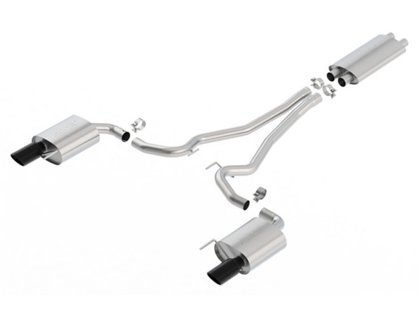 EC-Type approved systems are those that comply with European Union rules for motor vehicles, vehicle systems and components. Front muffler/ resonator contains an internal H-Pipe for increased performance and improved performance. This system comes with 4" bright chrome on T-304 stainless steel tips. BORLA(r) Cat-Back(tm) & Axle-Back exhaust systems feature patented straight-through and multi-core technology to unleash hidden horsepower. Increased exhaust velocity adds power, driving excitement, fuel economy, and the distinctive BORLA(r) Sound of Power respected by motoring enthusiasts everywhere. Each system is built from premium T-304 austenitic stainless steel, superior to T-400 series knockoffs (such as 409), to give you the absolute best in performance and durability. Ultra-smooth mandrel bends ensure maximum flow & power, and precision computer numerical control (CNC) manufacturing ensures an accurate fit. Best of all, BORLA(r) stands behind every system with a Million-Mile in the USA and Canada (1.6 million kilometer). Products sold outside of the USA and Canada carry a 3-year limited warranty. Just what you'd expect from the world's most experienced (and most winning) exhaust brand.