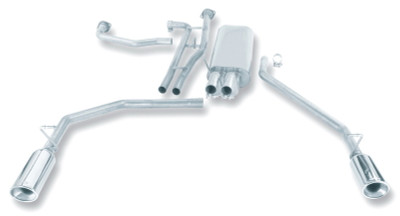 The BORLA R&D Team has designed a great performance Cat-Back system for the Nissan Titan. The 2.25" diameter BORLA system is True Dual. The muffler contains an internal H-Pipe for increased performance and improved sound. This Cat-Back system is going to deliver a significant improvement in sound that will give your Titan a more exciting driving experience. The BORLA S-Type sound level is specifically tuned for performance and sound on the Nissan Titans 5.6L V8 engine giving the truck a proper V8 growl and the distinct BORLA sound. As expected from BORLA, the system is drone-free to ensure an enjoyable ride. This system features 4" bright chrome on T-304 stainless steel tips. A system with black chrome on T-304 stainless steel tips is also available. Ultra-smooth mandrel bends ensure maximum flow & power, and precision computer numerical control (CNC) manufacturing ensures an accurate fit. The system is made of T-304 stainless steel and comes with the BORLA Million Mile Warranty. Bolt on a BORLA and hear the Titan roar!
