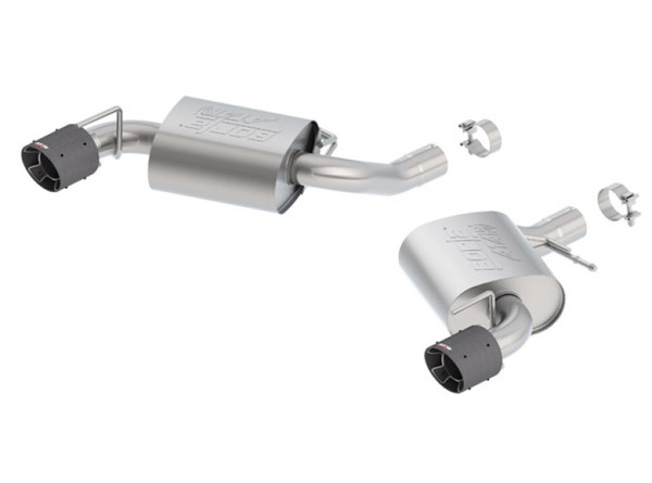 This system is for vehicles that come from the factory with single tips are not equipped with NPP (dual mode exhaust). This system features the aggressive ATAK(r) sound and exits through unique BORLA(r) 4.5" carbon fiber tips with bright centers. Systems with bright chrome on T-304 stainless steel tips and black coated T-304 stainless steel tips are also available. BORLA(r) Cat-Back(tm) & Axle-Back exhaust systems feature patented straight-through and multi-core technology to unleash hidden horsepower. Increased exhaust velocity adds power, driving excitement, fuel economy, and the distinctive BORLA(r) Sound of Power respected by motoring enthusiasts everywhere. Each system is built from premium T-304 austenitic stainless steel, superior to T-400 series knockoffs (such as 409), to give you the absolute best in performance and durability. Ultra-smooth mandrel bends ensure maximum flow & power, and precision computer numerical control (CNC) manufacturing ensures an accurate fit. Best of all, BORLA(r) stands behind every system with a Million-Mile Warranty. Just what you'd expect from the world's most experienced (and most winning) exhaust brand.