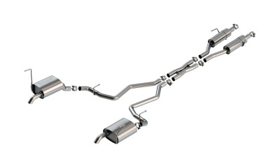 This system is designed specifically for the Grand Cherokee L. The systems features T-304 stainless steel turndown tips and does NOT fit vehicles with exhaust cut outs in the rear valance. BORLA(r) Cat-Back(tm) and Axle-Back exhaust systems feature patented straight-through and multi-core technology designed to unleash hidden horsepower. Increased exhaust velocity adds power, driving excitement, fuel economy, and the distinctive BORLA(r) Sound of Power respected by motoring enthusiasts everywhere. System contains a merge X-Pipe for increased performance and improved sound. Each system is built from premium T-304 stainless steel, superior to T-400 series knockoffs (such as 409), to give you the absolute best in performance and durability. Ultra-smooth mandrel bends ensure maximum flow & power, and precision computer-controlled CNC manufacturing ensures an accurate fit. Best of all, BORLA(r) stands behind every system with a Million-Mile Warranty. Just what you'd expect from the world's most experienced (and most winning) exhaust brand.