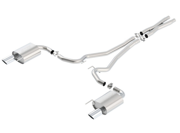 System contains a merge X-Pipe for increased performance and improved sound. Features bright chrome on T-304 stainless steel tips. Borla Cat-Back & Axle-Back exhaust systems feature patented straight-through and multi-core technology designed to unleash hidden horsepower. Increased exhaust velocity adds power, driving excitement, fuel economy, and the distinctive Borla Sound of Power respected by motoring enthusiasts everywhere. Each system is built from premium T-304 stainless steel, superior to T-400 series knockoffs (such as 409), to give you the absolute best in performance and durability. Ultra-smooth mandrel bends ensure maximum flow & power, and precision computer-controlled CNC manufacturing ensures an accurate fit. Best of all, Borla stands behind every system with a Million-Mile Warranty. Just what you'd expect from the world's most experienced (and most winning) exhaust brand.