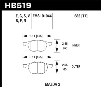 Hawk HPS 08-09 Mazda 3 / Ford/ Volvo HPS Street Front Brake Pads - HB519F.682