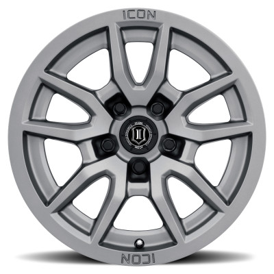 quick view Add to Cart ICON ICON Vector 5 17x8.5 5x5 -6mm Offset 4.5in BS 71.5mm Bore Titanium Wheel - 2617857345TT MSRP: $264.95 $245.48 The ICON Alloys Vector 5 wheel incorporates sharp lines and an aggressive spoke design while a featureless lip provides clean looks and makes care & maintenance an easier task (doesn't trap debris as... Add to Cart Add to Wish List Add to My Wish List Create New Wish List Compare