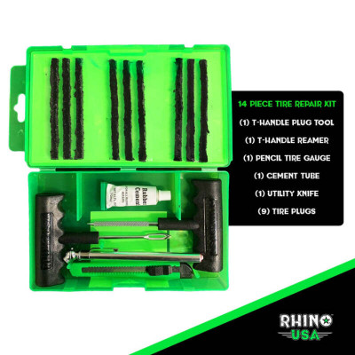 quick view Add to Cart Rhino USA Rhino USA 14-Piece Compact Tire Repair Plug Kit - RNO-PLUG-PACK MSRP: $14.90 RHINO USA 14-PIECE COMPACT TIRE REPAIR PLUG KIT - RNO-PLUG-PACK Add to Cart Add to Wish List Add to My Wish List Create New Wish List Compare