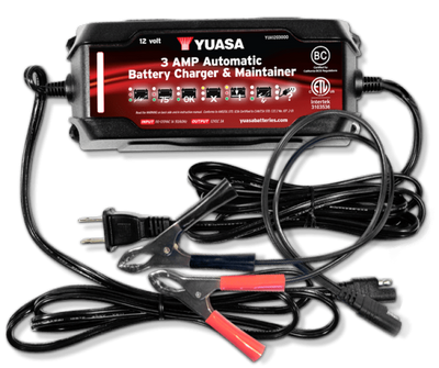 quick view Add to Cart Yuasa Battery Yuasa 3 Amp Charger & Maintainer - 12V - YUA3AMPCH MSRP: $91.66 Automatic charging and maintenance modes maximize battery life and performance. O.E.M.-approved, five-stage charging algorithm is faster and more energy efficient. Add to Cart Add to Wish List Add to My Wish List Create New Wish List Compare