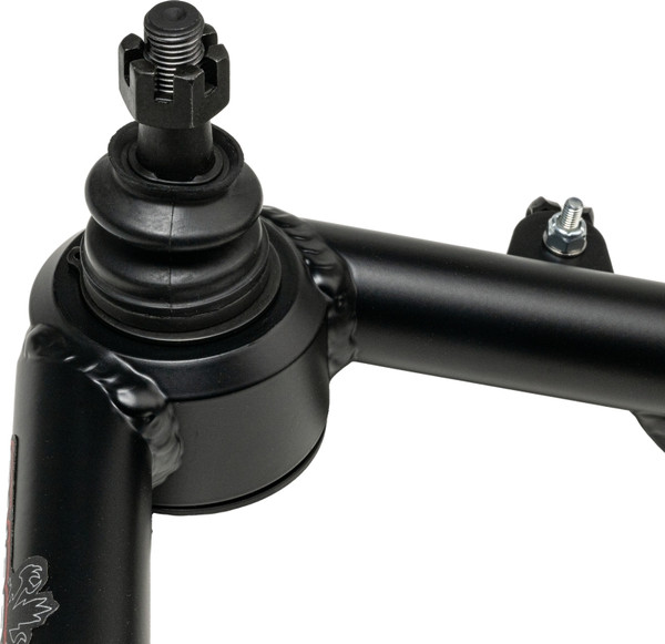 Introducing the Camburg X-Joint, a high-performance ball-joint designed for extreme conditions. Made with heat-treated materials and an improved boot design, it offers increased strength, better greasing, and extended longevity. The fully sealed dual lip seal design prevents contamination from dirt, sand, rain, mud, and snow. With a grease zerk fitting, you can easily grease the joint without removing the boot. Specifically designed for our ball-joint upper arms, the X-Joint provides optimum fit and maximum wheel travel. It corrects suspension geometry, improves handling, and allows for a wider range of alignment adjustment. The tubular construction offers more tire and shock clearance compared to stock arms. CNC bent tubes, MIG welded, and featuring thicker .156" wall round tubing, these arms are built to last. Polyurethane frame pivot bushings with grease-able zerk fittings ensure smooth operation. The Camburg X-Joint comes pre-installed with billet aluminum covers and a matte black powder-coating. All necessary hardware is included for easy installation. Designed for 1-3" of lift, it increases usable wheel travel and corrects camber and caster. Made in the USA in-house, the Camburg X-Joint is the perfect upgrade for 6 lug model trucks.