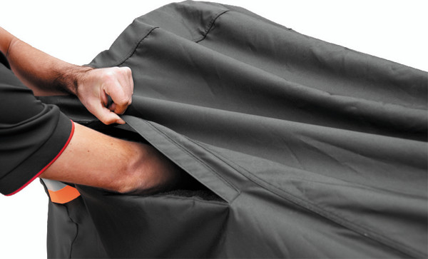 Heavy-duty, top of the line, all-weather cover from CoverMax® by BikeMaster® that is designed specifically for trikes. Waterproof seams, 300-denier polyester with PU coating. Ultra-soft 30g velour lining helps protect paint from scratches. Two top covered vents improve ventilation and help reduce condensation build up. Vent covers are reflective for added visibility and security. Convenient access panel without removal of cover. Windshield liner helps protect windscreen from scratching. Extra-wide tail slot accommodates multiple radio antennas. Tailor-fit elastic skirt and adjustable hook-and-loop center strap helps secure the cover and gives a custom style fit. Built-in grommets for use of security cable lock (cable lock not included). Available for metric or Harley-Davidson® trikes and/or Spyder roadster.