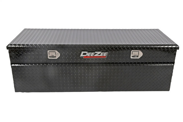 Dee Zee Tool Box - Red Label Chest. Constructed of heavy duty Brite-Tread aluminum. Black-Tread powder coat, provides a gloss black finish while it protects and prevents oxidation. Crown style lid...